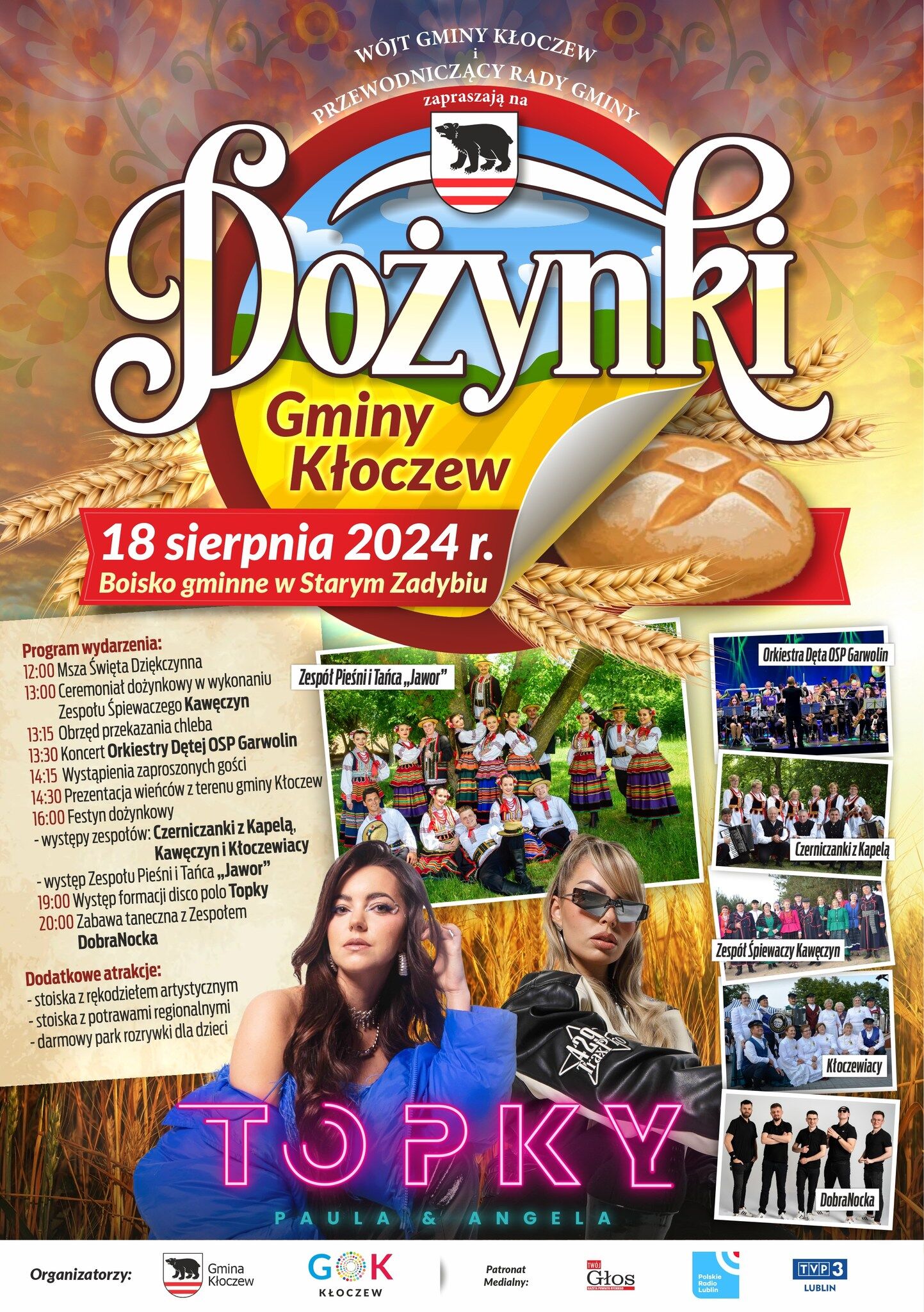 W imieniu Wójta Gminy Kłoczew i Przewodniczącego Rady Gminy serdecznie zapraszamy na DOŻYNKI GMINY KŁOCZEW!