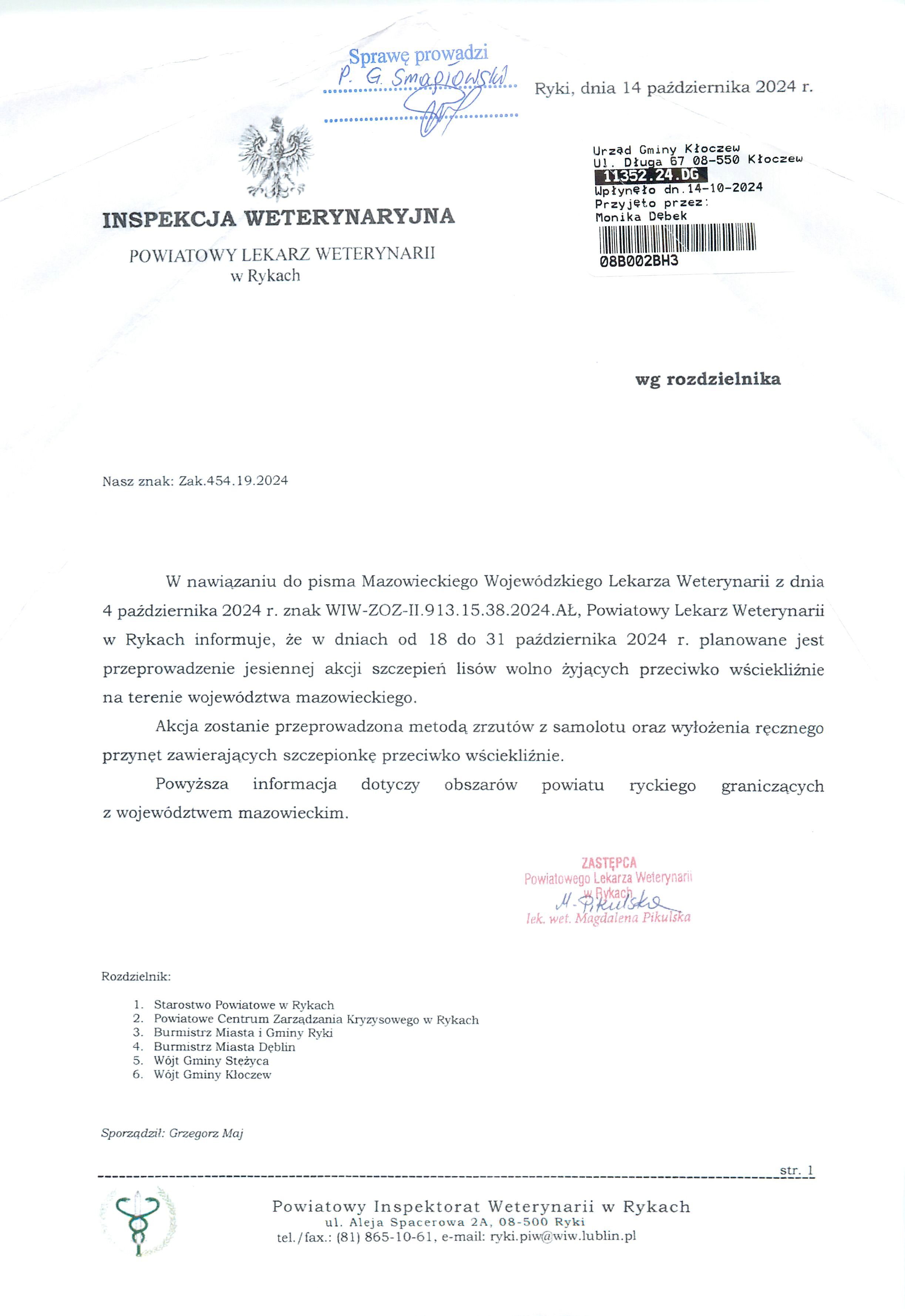 Mazowiecki Lekarz Weterynarii informuje, że w dniach 18 - 31 października 2024 r.* na terenie województwa mazowieckiego planowane jest przeprowadzenie szczepienia lisów wolno żyjących przeciwko wściekliźnie.